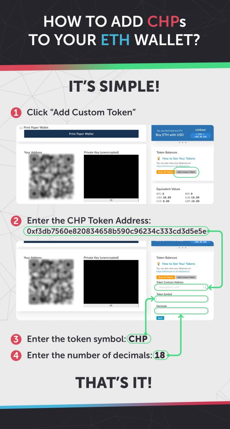 CHP tokens are an ERC-20 token, which means that they work with Ethereum Smart Contracts and can only be held in compatible wallets. If you’re new this may be a lot of to wrap your head around, which is why we split up all the details into two guides: