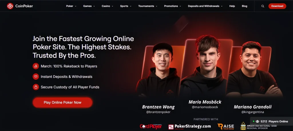 Откройте веб-браузер, перейдите по ссылке www.CoinPoker.com и нажмите кнопку «Скачать».